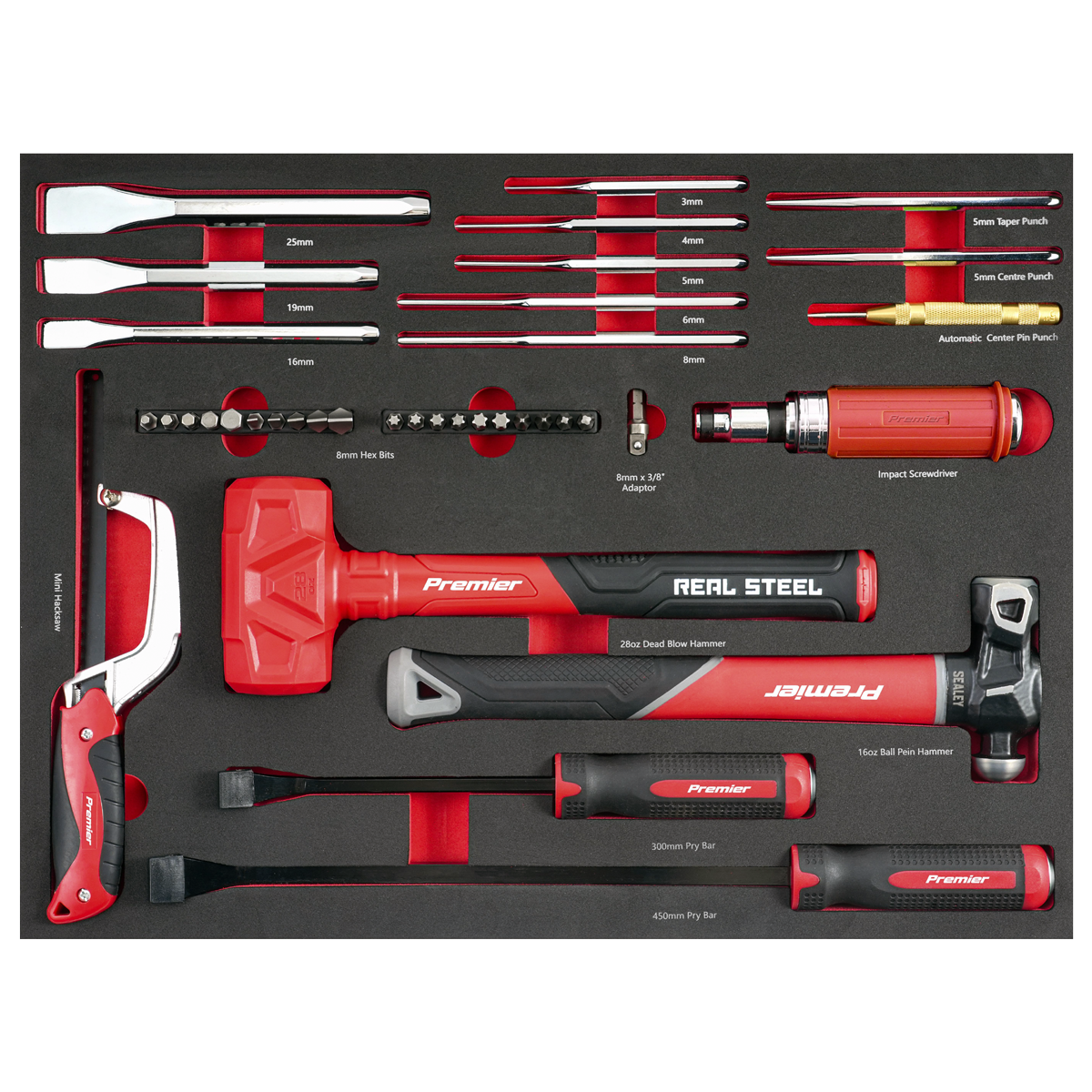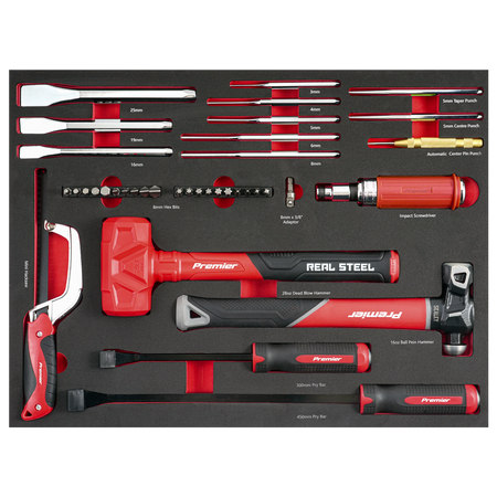Tool Tray with Striking, Pry Bar, Hacksaw & Impact Screwdriver Set. Suitable for Sealey AP24 series and selected Superline PRO® Topchests, Rollcabs & Workstations.