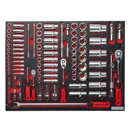 Tool Tray with 91pc 1/4", 3/8" and 1/2"Sq Drive Socket Set.