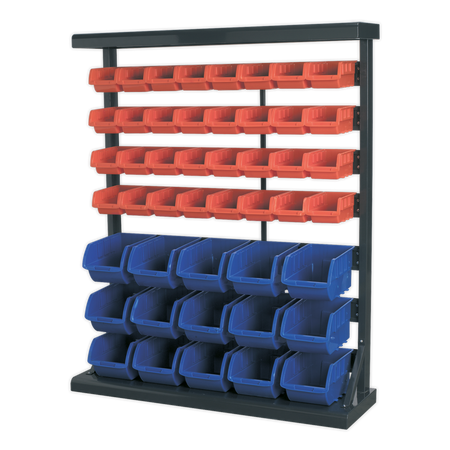 • Powder coated steel racking with 32 small and 15 large composite storage bins positioned evenly on one side.