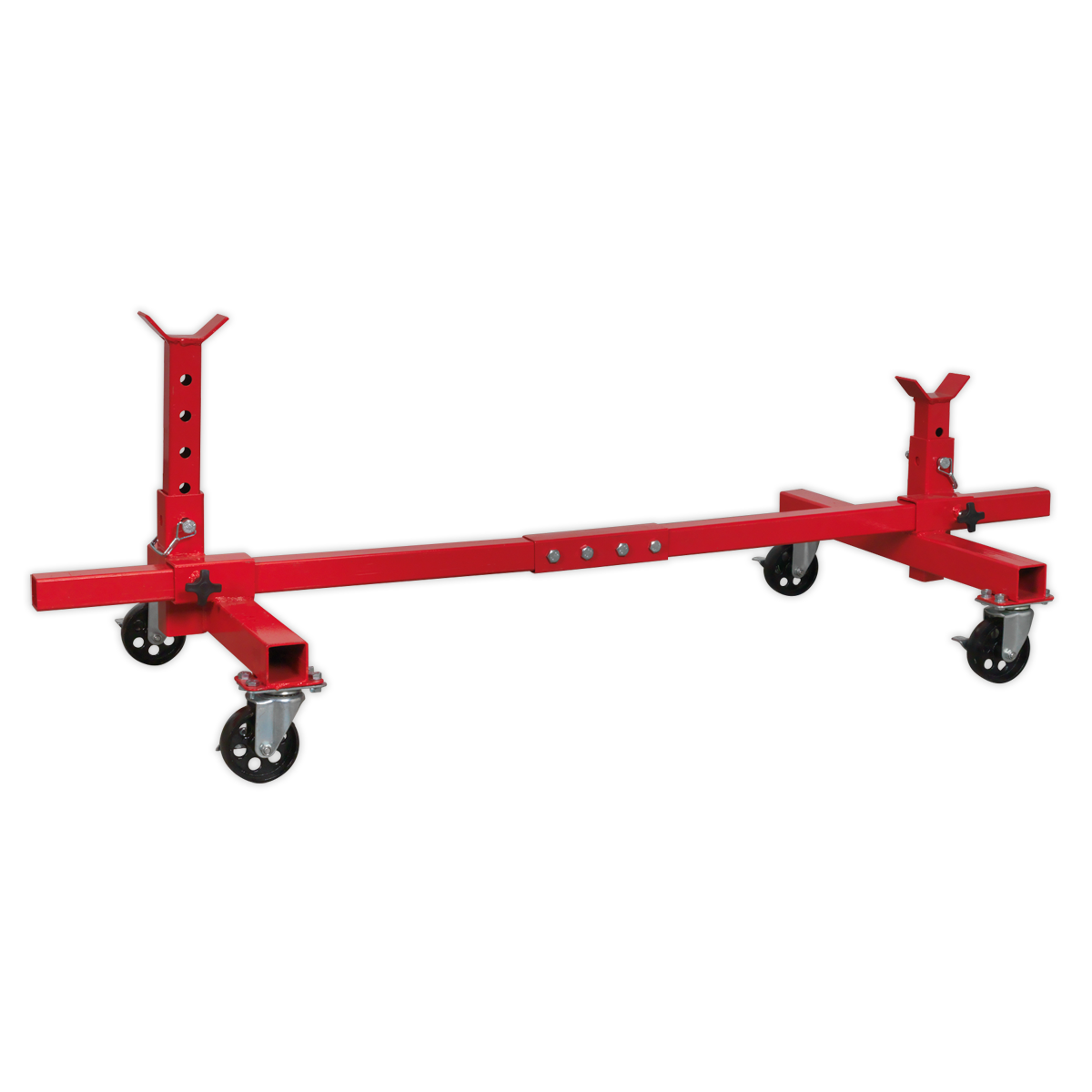 Heavy-duty steel frame suitable for supporting partly dismantled or badly damaged vehicles. Enables easy movement around workshop or bodyshop. Crutch supports adjustable for height and overall width. Fitted with four 90mm locking metal castors.,• Heavy-duty steel frame suitable for supporting partly dismantled or badly damaged vehicles.