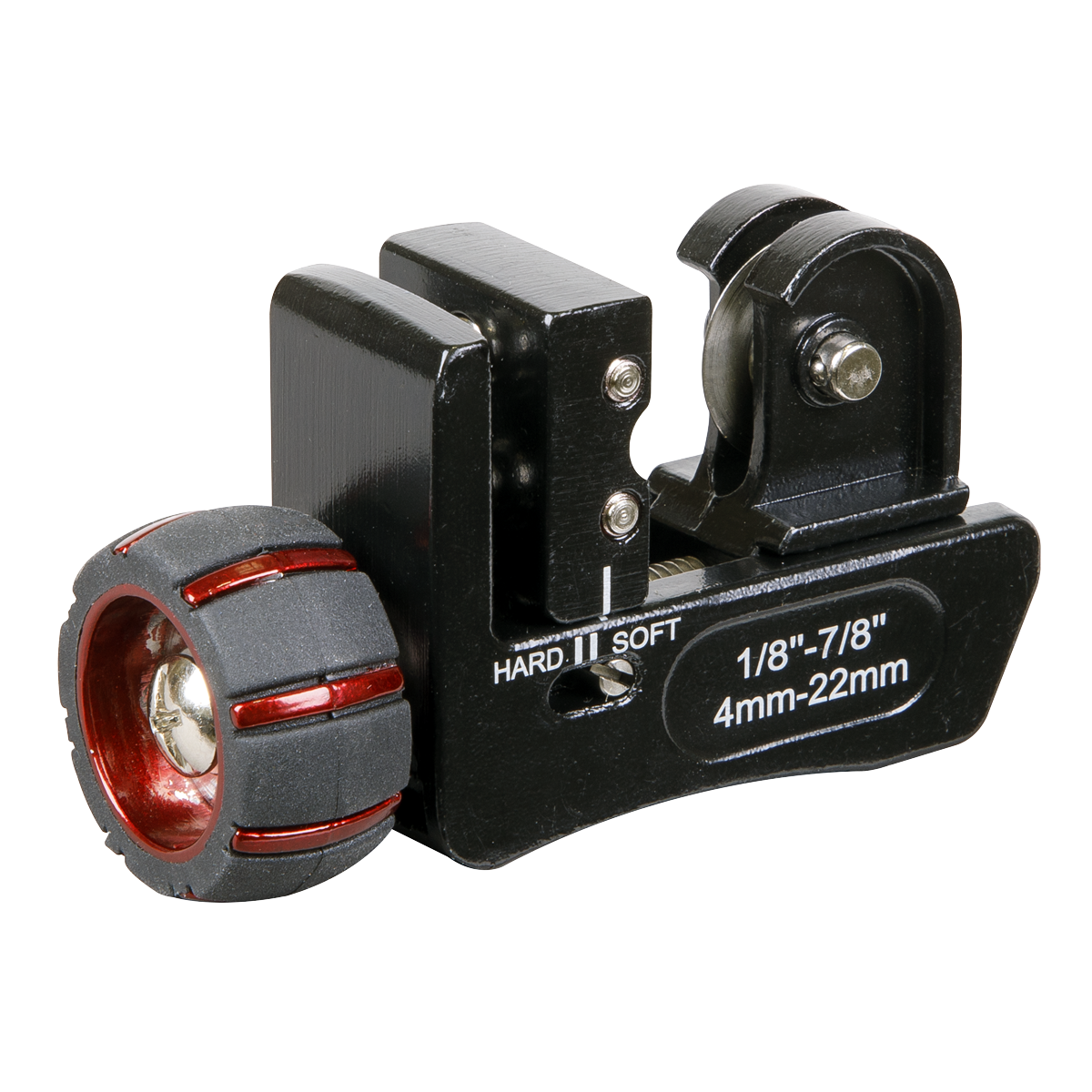 Patented design ensures that the spring mechanism maintains the correct cutting pressure on the pipe at all times. Features a smooth screw action and nickel-plated blade for increased cutting performance.,• Patented design ensures that the spring mechanism maintains the correct cutting pressure on the pipe at all times.