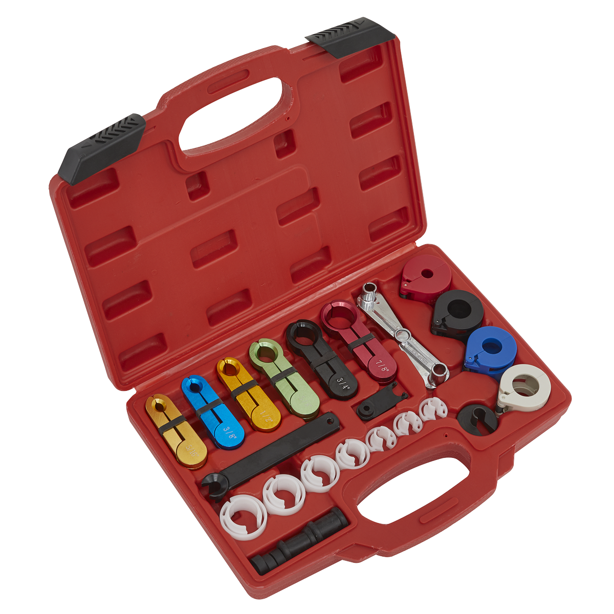 Comprehensive kit for separating automotive air conditioning hoses and fuel lines. Suitable for a wide variety of vehicles including, amongst others, Ford and Vauxhall/Opel. Supplied in storage case.,• Comprehensive kit for separating automotive air conditioning hoses and fuel lines.