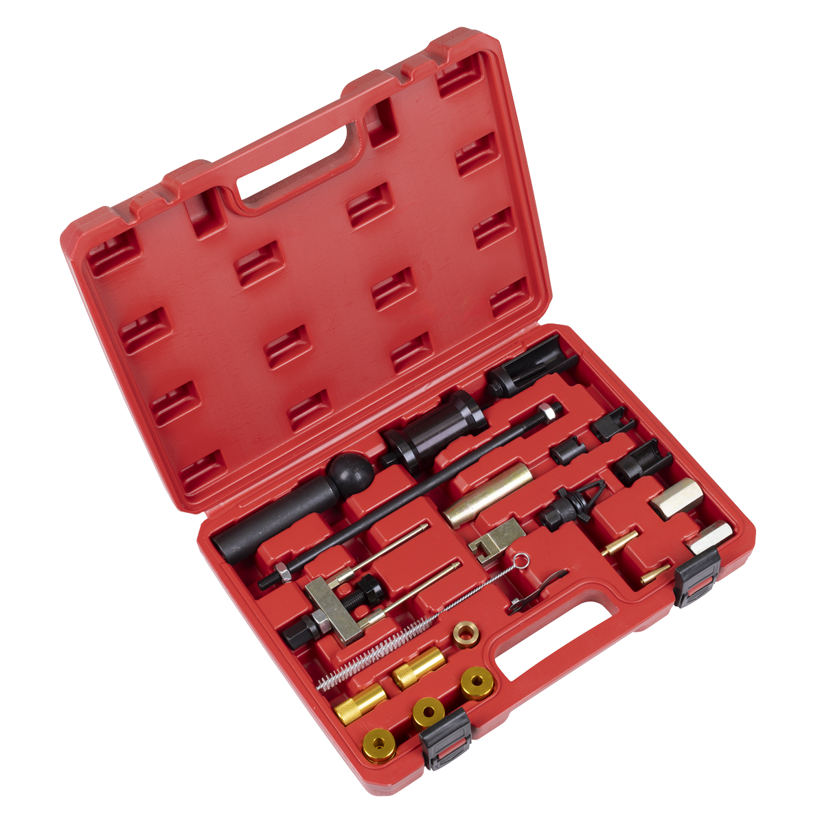 Comprehensive kit designed for quick and easy removal of injectors and injector seals. For petrol and diesel injectors and injector seals on 1.4SDi/TDi, 1.9D/SF/TDi/TDi(PD), 2.0Ti/TDi(PD), 2.8TDi(PD) and FSi injectors found on VAG engines. Equivalent OEM number T10133 and T10163. Supplied in a storage case.,• COMPREHENSIVE KIT – Designed for quick and easy removal of injectors and injector seals.