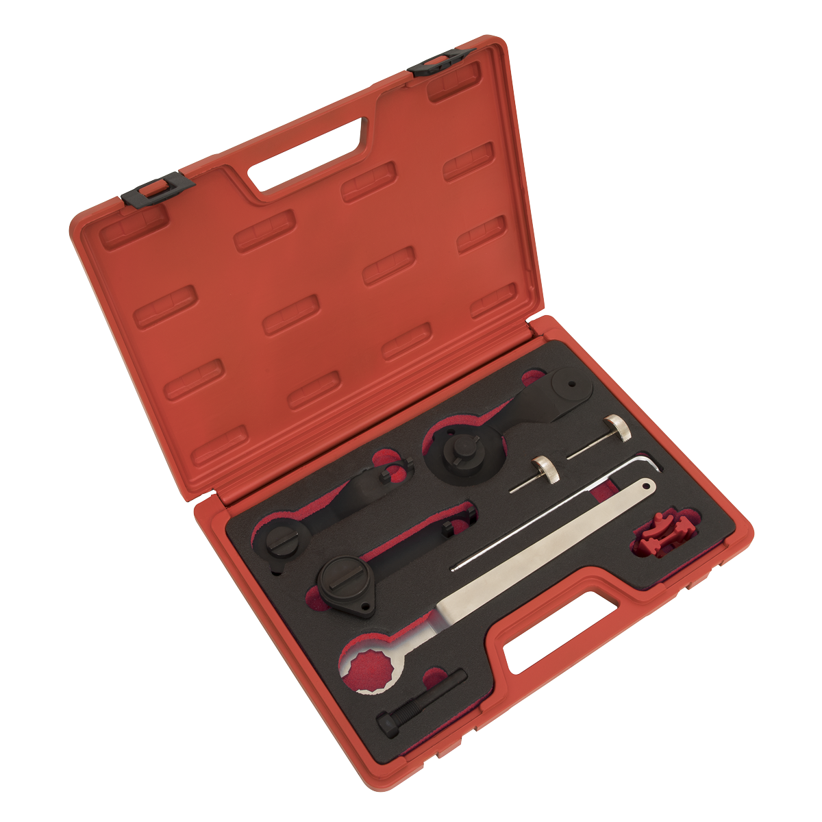 • Contains essential tools for camshaft and crankshaft locking.