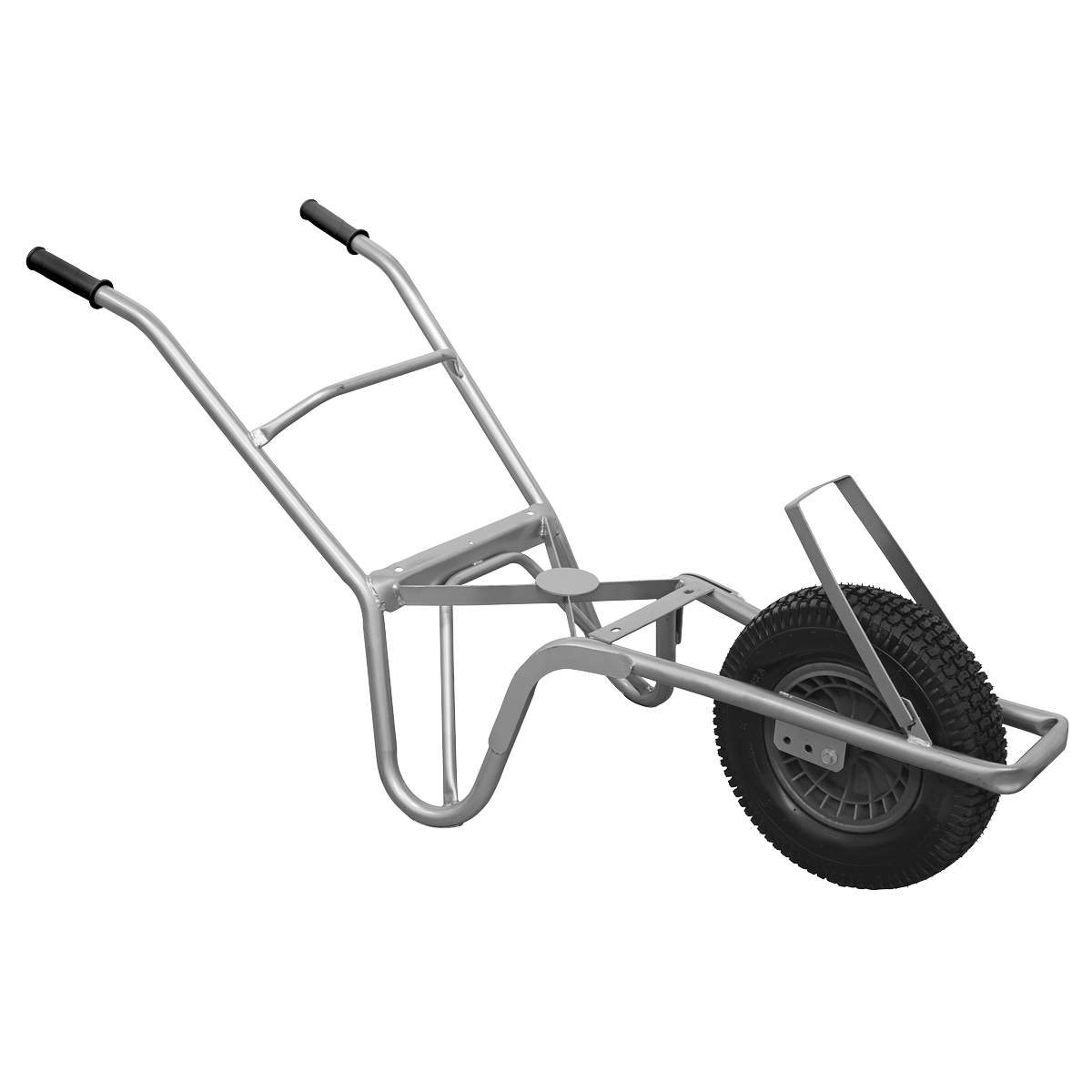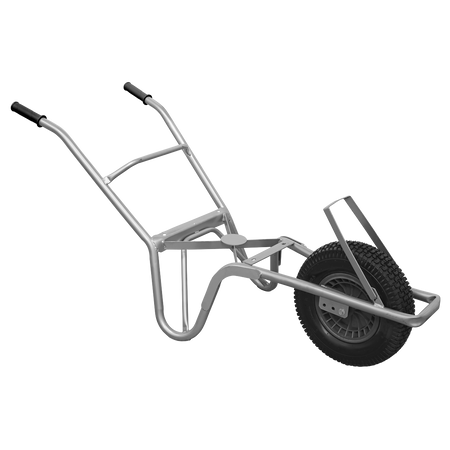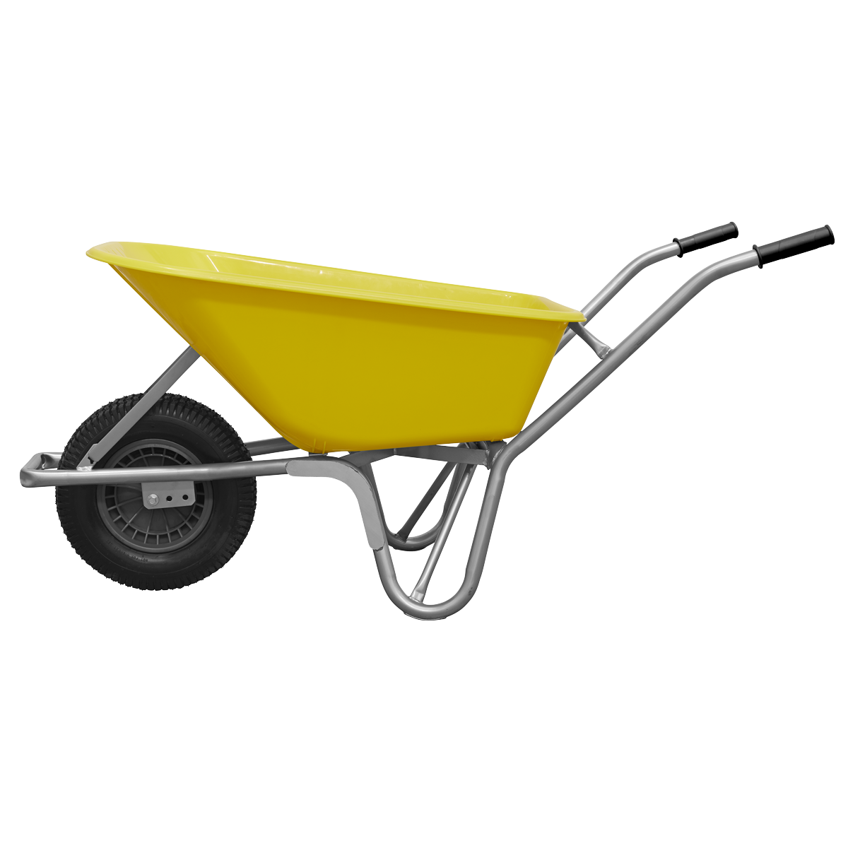 Heavy-duty wheelbarrow ideal for construction as well as general domestic use. Our wheelbarrows use air filled pneumatic tyres, perfect for absorbing impact and are ideal for use on uneven surfaces and rough terrain. Constructed with strong tubular steel frame and rubber gripped handles. Wheel Size: Ø390mm.