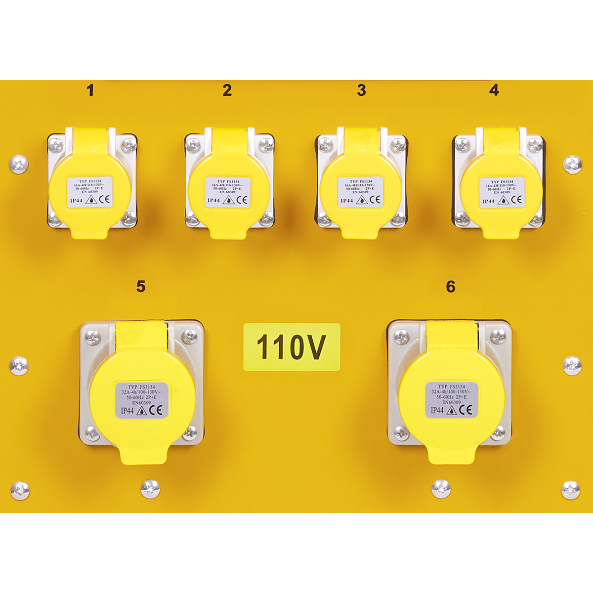 • Supplied with 2 x 32A/110V sockets and 4 x 16A/110V sockets.